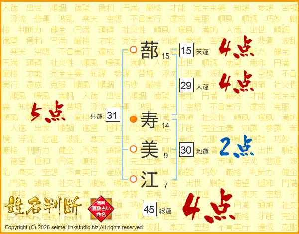 蔀寿美江さんの天運は15画の4点!