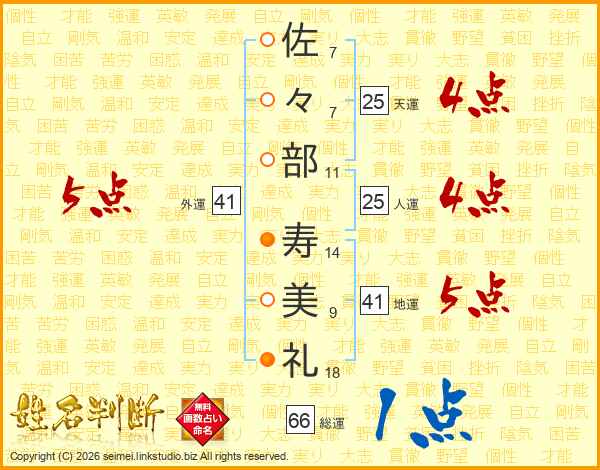 佐々部寿美礼さんの総運は66画の1点!