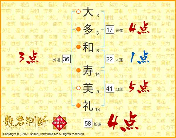 大多和寿美礼さんの外運は36画の3点!