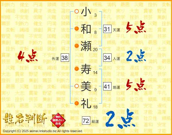 小和瀬寿美礼さんの総運は72画の2点!