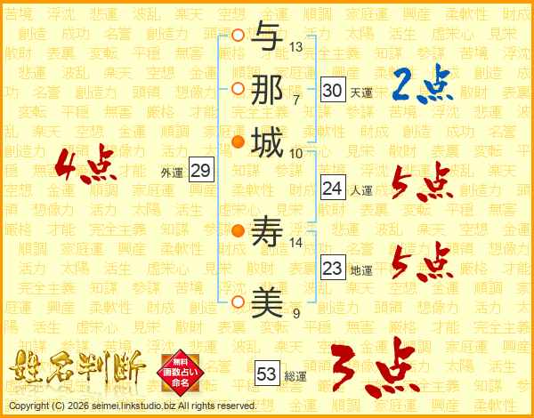 与(13画)那(7画)城(10画) 寿(14画)美(9画)