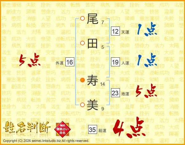 尾田寿美さんの総運は35画の4点!
