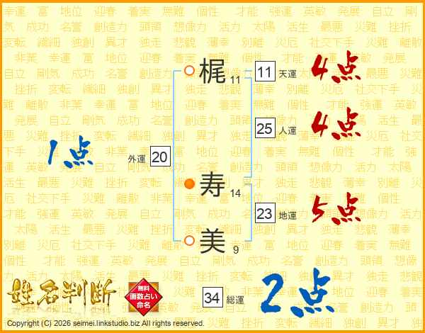 梶(11画) 寿(14画)美(9画)