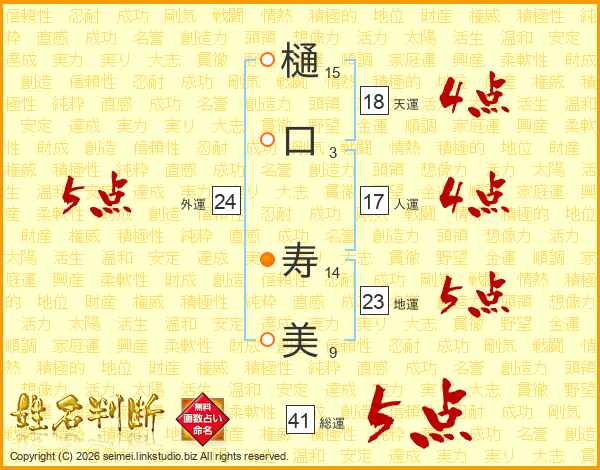 樋口寿美さんの外運は24画の5点!