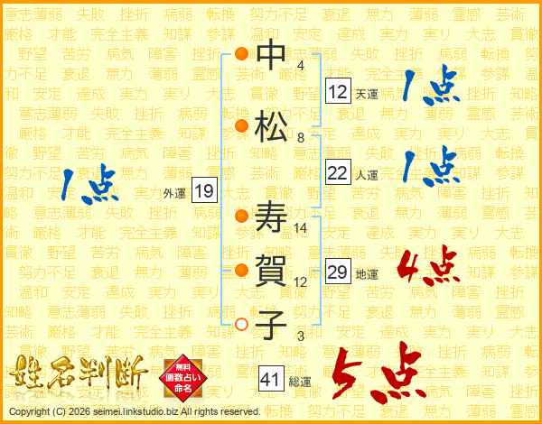 中松寿賀子さんの総運は41画の5点!