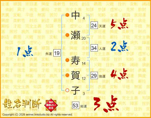 中瀬寿賀子さんの総運は53画の3点!