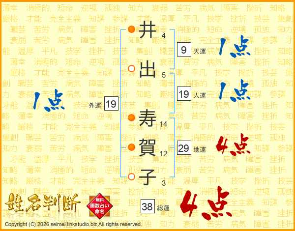 井出寿賀子さんの総運は38画の4点!