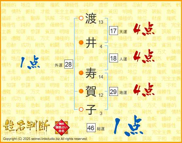 渡井寿賀子さんの総運は46画の1点!