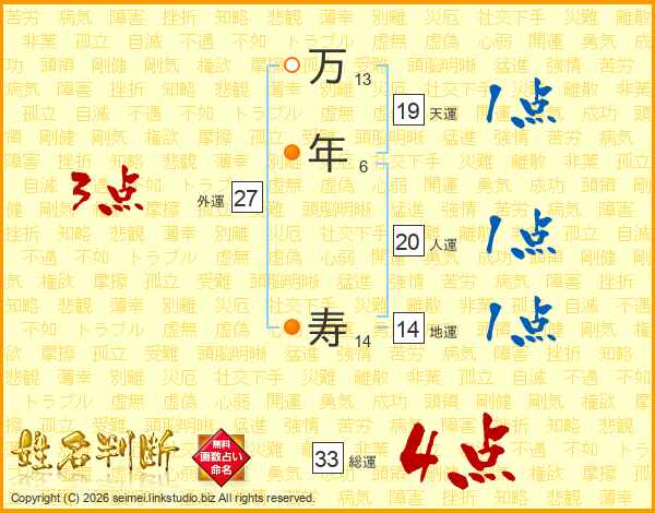 万年寿さんの総運は33画の4点!