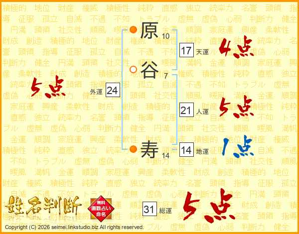原谷寿さんの総運は31画の5点!