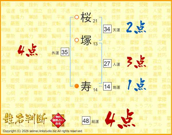 桜塚寿さんの総運は48画の4点!