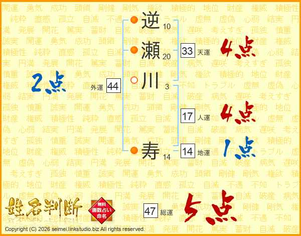 逆瀬川寿さんの総運は47画の5点!