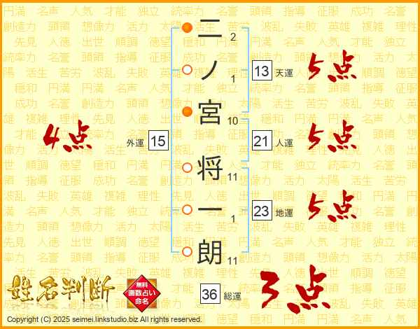 二ノ宮将一朗さんの総運は36画の3点!