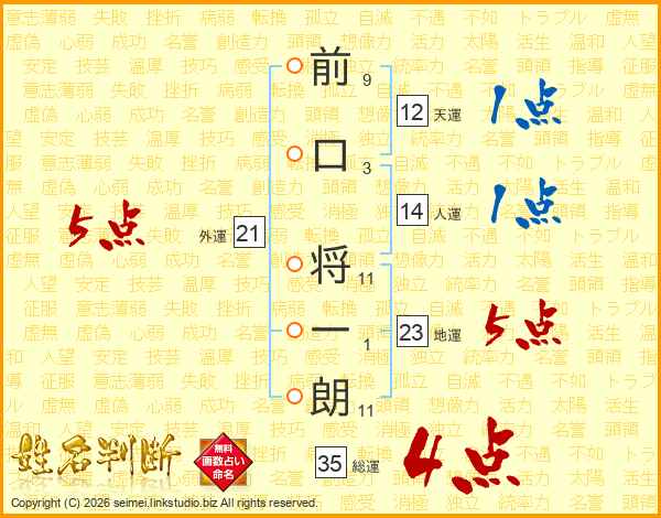 前口将一朗さんの総運は35画の4点!