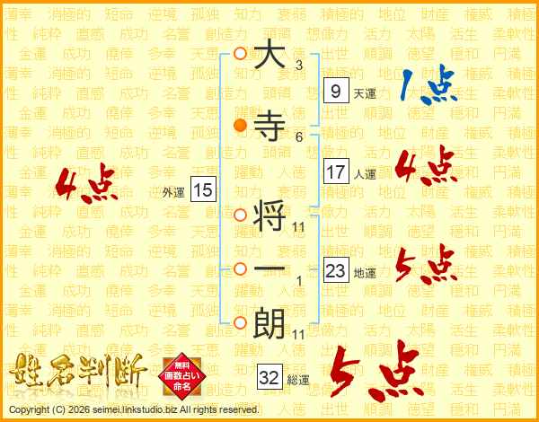 大寺将一朗さんの総運は32画の5点!