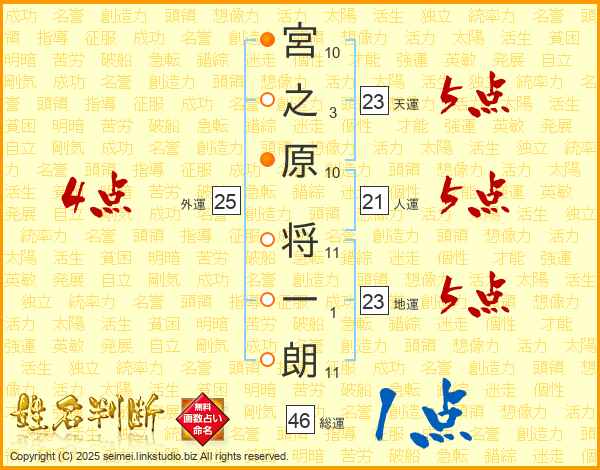 宮之原将一朗さんの総運は46画の1点!