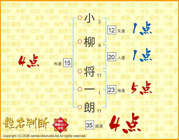 小柳将一朗さんの総運は35画の4点!