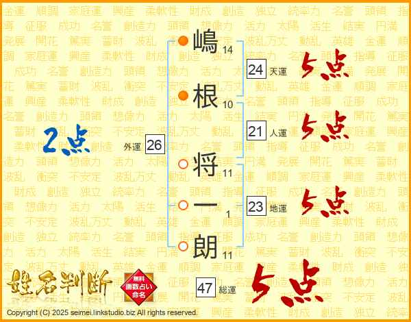 嶋根将一朗さんの総運は47画の5点!