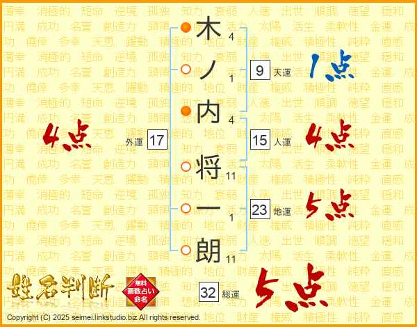 木ノ内将一朗さんの総運は32画の5点!