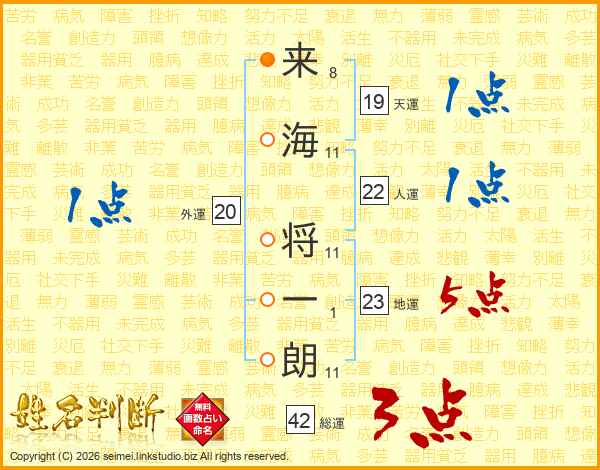 来海将一朗さんの地運は23画の5点!