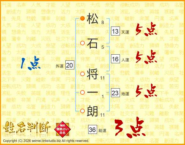 松石将一朗さんの天運は13画の5点!