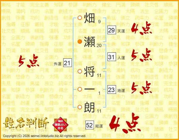 畑瀬将一朗さんの総運は52画の4点!
