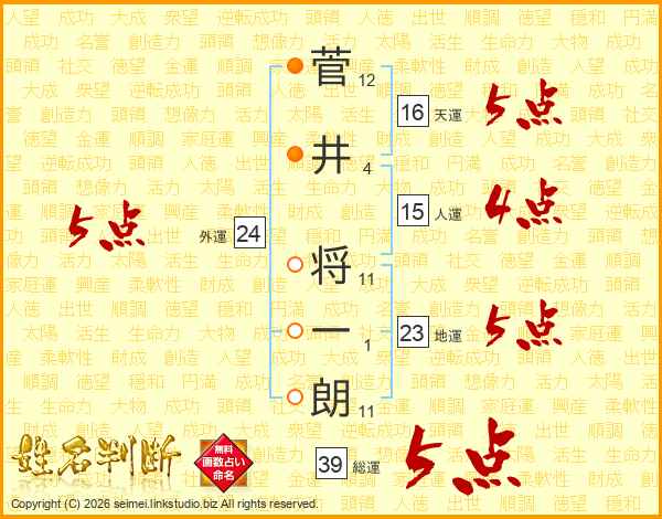 菅井将一朗さんの総運は39画の5点!