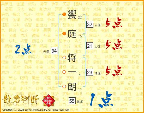 饗庭将一朗さんの人運は21画の5点!