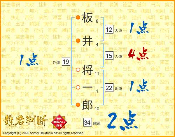 板(8画)井(4画) 将(11画)一(1画)郎(10画)