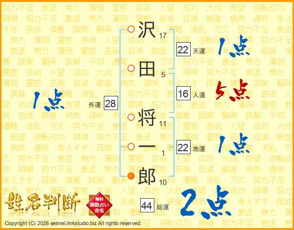 沢田将一郎さんの総運は44画の2点!