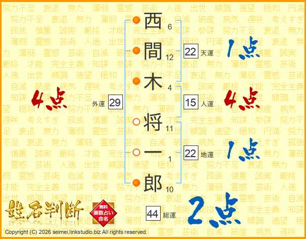 西間木将一郎さんの総運は44画の2点!