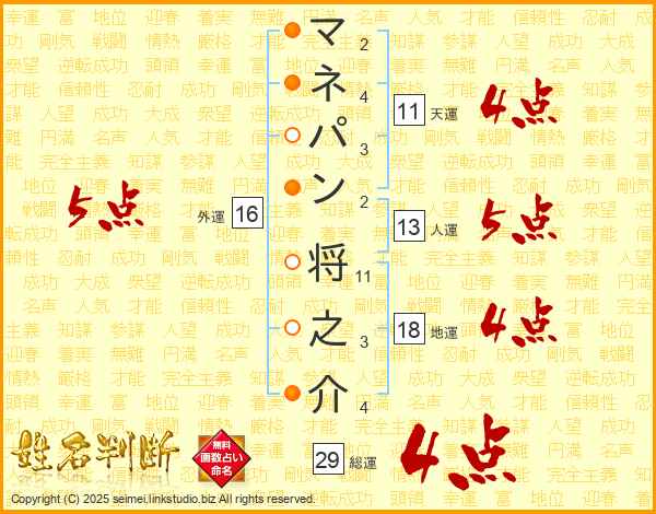マ(2画)ネ(4画)パ(3画)ン(2画) 将(11画)之(3画)介(4画)