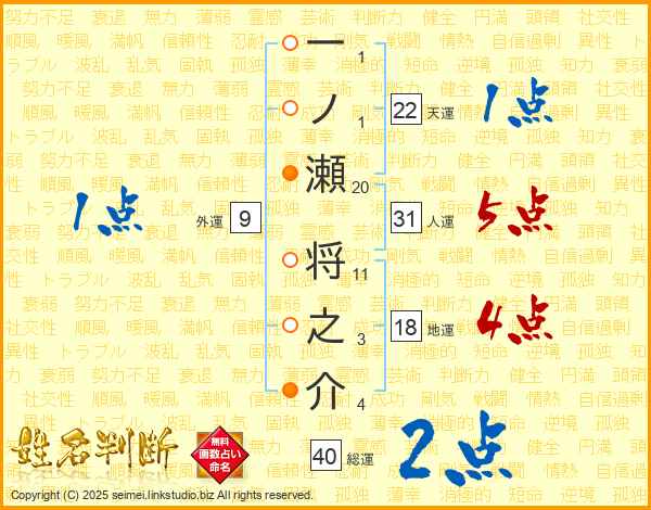 一ノ瀬将之介さんの人運は31画の5点!