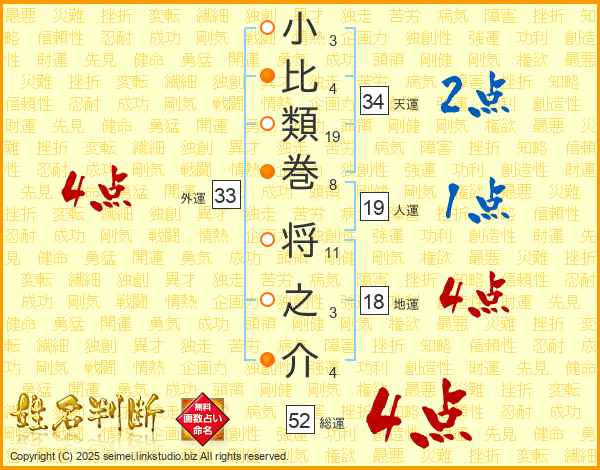 小(3画)比(4画)類(19画)巻(8画) 将(11画)之(3画)介(4画)