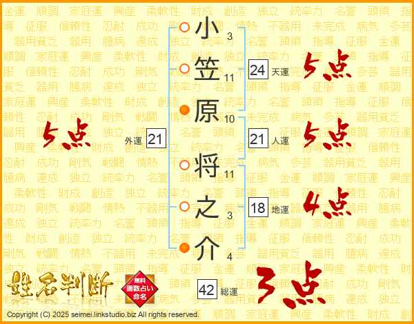 小(3画)笠(11画)原(10画) 将(11画)之(3画)介(4画)