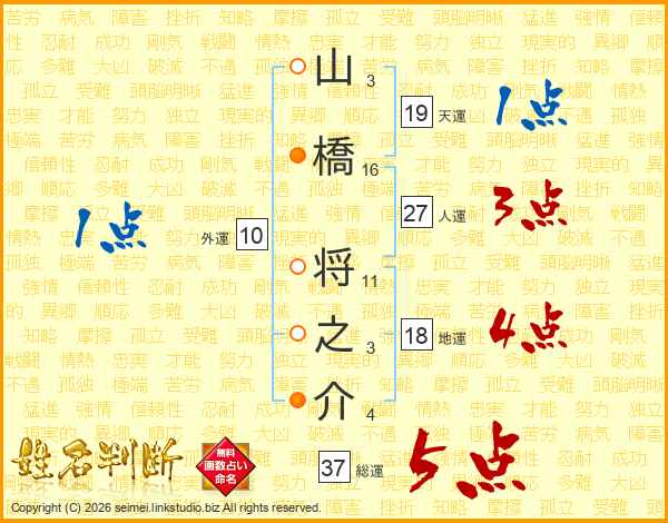 山(3画)橋(16画) 将(11画)之(3画)介(4画)