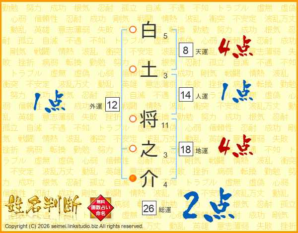 白土将之介さんの総運は26画の2点!