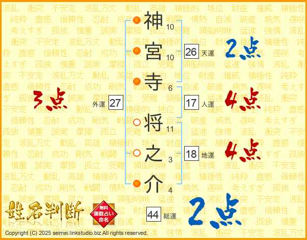 神(10画)宮(10画)寺(6画) 将(11画)之(3画)介(4画)