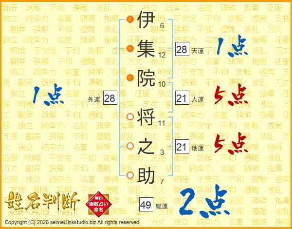 伊集院将之助さんの総運は49画の2点!