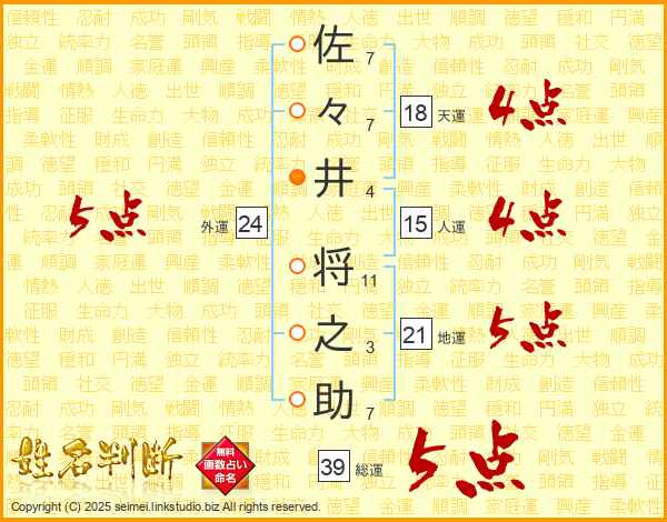 佐(7画)々(7画)井(4画) 将(11画)之(3画)助(7画)