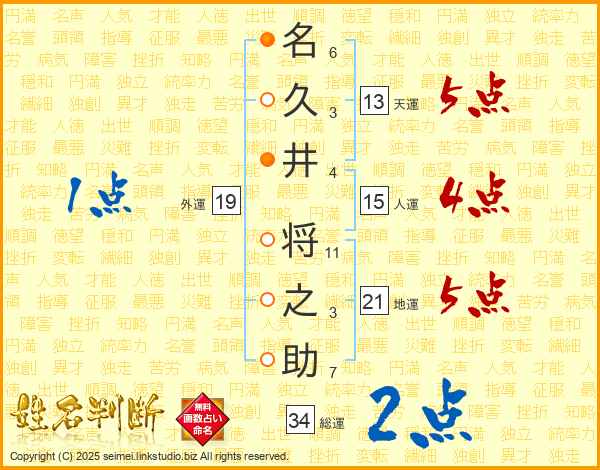 名久井将之助さんの総運は34画の2点!