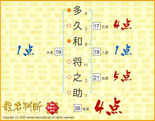 多久和将之助さんの総運は38画の4点!