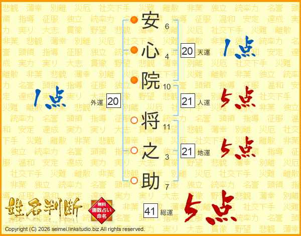 安心院将之助さんの地運は21画の5点!