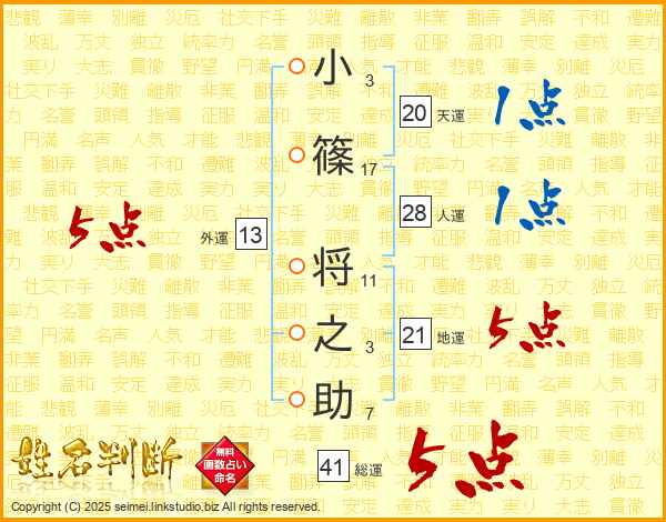 小(3画)篠(17画) 将(11画)之(3画)助(7画)