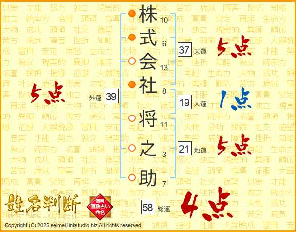 株(10画)式(6画)会(13画)社(8画) 将(11画)之(3画)助(7画)