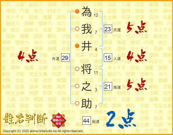 為(12画)我(7画)井(4画) 将(11画)之(3画)助(7画)