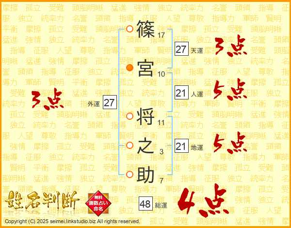 篠(17画)宮(10画) 将(11画)之(3画)助(7画)