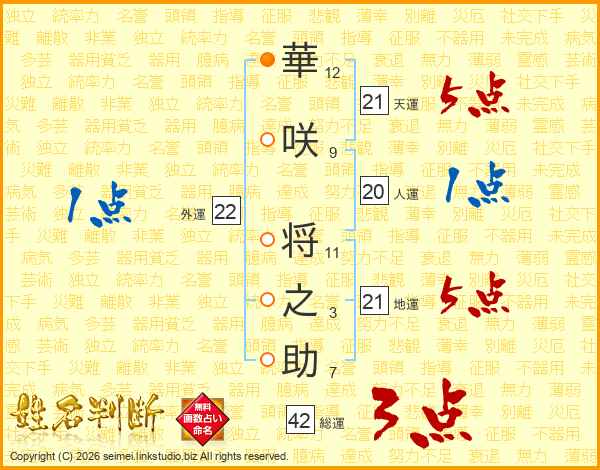 華咲将之助さんの天運は21画の5点!