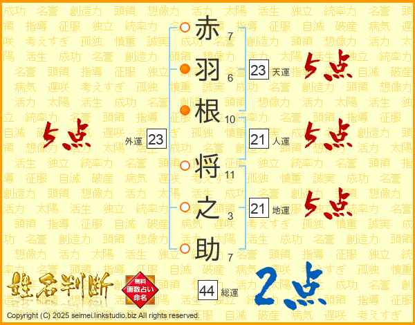 赤(7画)羽(6画)根(10画) 将(11画)之(3画)助(7画)