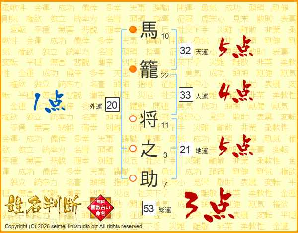 馬(10画)籠(22画) 将(11画)之(3画)助(7画)